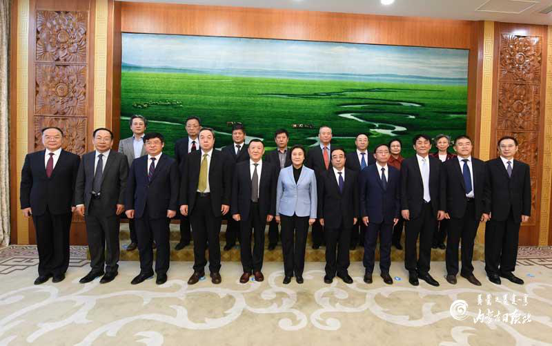 4月28日下午,自治區(qū)政府參事聘任儀式在呼和浩特舉行。自治區(qū)主席布小林為新任自治區(qū)政府參事頒發(fā)聘書并與現(xiàn)任和新聘政府參事合影。內(nèi)蒙古日報社融媒體記者韓卿立攝