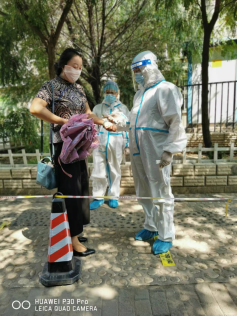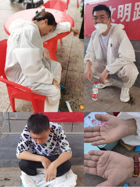 炎炎夏日,烈日當(dāng)頭,8月的烏海天氣異常炎熱,防護(hù)服密不透氣,志愿者們衣衫已被汗水全部浸濕,為減少對(duì)防護(hù)服穿脫造成的污染,志愿者們持續(xù)工作,堅(jiān)持不喝水、不上洗手間、不中途休息,持續(xù)換崗時(shí)間,才迎來(lái)寶貴休息時(shí)間。志愿者的奉獻(xiàn)和擔(dān)當(dāng)精神,過(guò)往的群眾都看在眼里、暖在心里,不少熱心居民為工作人員們送上了葡萄糖水、雪糕、冰飲等物資,點(diǎn)滴愛(ài)心匯聚強(qiáng)大力量,無(wú)私奉獻(xiàn)、互幫互助的志愿者精神在這里傳遞。愛(ài)心居民的愛(ài)心舉動(dòng),也進(jìn)一步鼓舞了志愿者守護(hù)大家生命健康安全的決心和信心!
