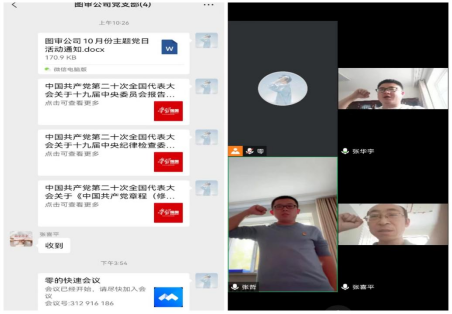 10月24日下午,集團(tuán)公司機關(guān)黨支部全體黨員、入黨積極分子共40名同志通過騰訊會議APP采取線上形式召開主題黨日活動。會議線下主會場由集團(tuán)公司閉環(huán)管理的12名黨員和積極分子組成,與線上的全體黨員首先進(jìn)行了主題黨日的前四項規(guī)定動作,奮戰(zhàn)在抗疫一線的同志們帶領(lǐng)大家奏唱國歌、重溫入黨誓詞、領(lǐng)誦黨章、主動繳納黨費。之后,集團(tuán)公司黨委書記郝關(guān)峰,黨委委員、紀(jì)委書記張永東領(lǐng)學(xué)了《中國共產(chǎn)黨第二十次全國代表大會關(guān)于十九屆中央委員會報告的決議》《中國共產(chǎn)黨第二十次全國代表大會關(guān)于十九屆中央紀(jì)律檢查委員會工作報告的決議》《中國共產(chǎn)黨第二十次全國代表大會關(guān)于中國共產(chǎn)黨章程(修正案)的決議》。集團(tuán)公司機關(guān)黨支部書記喬娜通報了本次疫情防控工作相關(guān)情況。