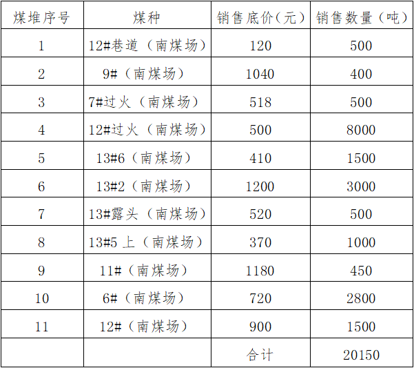 2.價(jià)格說明:含稅價(jià)、不含運(yùn)費(fèi)、場(chǎng)地自取,裝卸工作統(tǒng)一由我公司安排,煤價(jià)不包含裝卸費(fèi),裝卸費(fèi)另付。