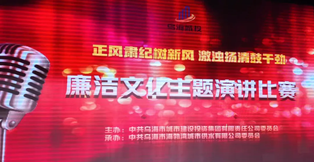 為深入貫徹落實習近平總書記關于加強新時代廉潔文化建設的部署要求,進一步增強全體黨員干部職工紀法意識,營造風清氣正的廉潔氛圍,推動清廉國企建設走深走實,11月29日下午,由市城投集團公司黨委主辦,海勃灣城市供水公司黨委承辦的“正風肅紀樹新風,激濁揚清鼓干勁”廉潔文化主題演講比賽在烏海市科技館二樓小禮堂舉行。