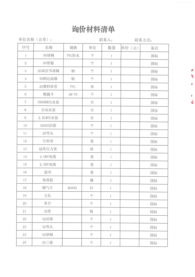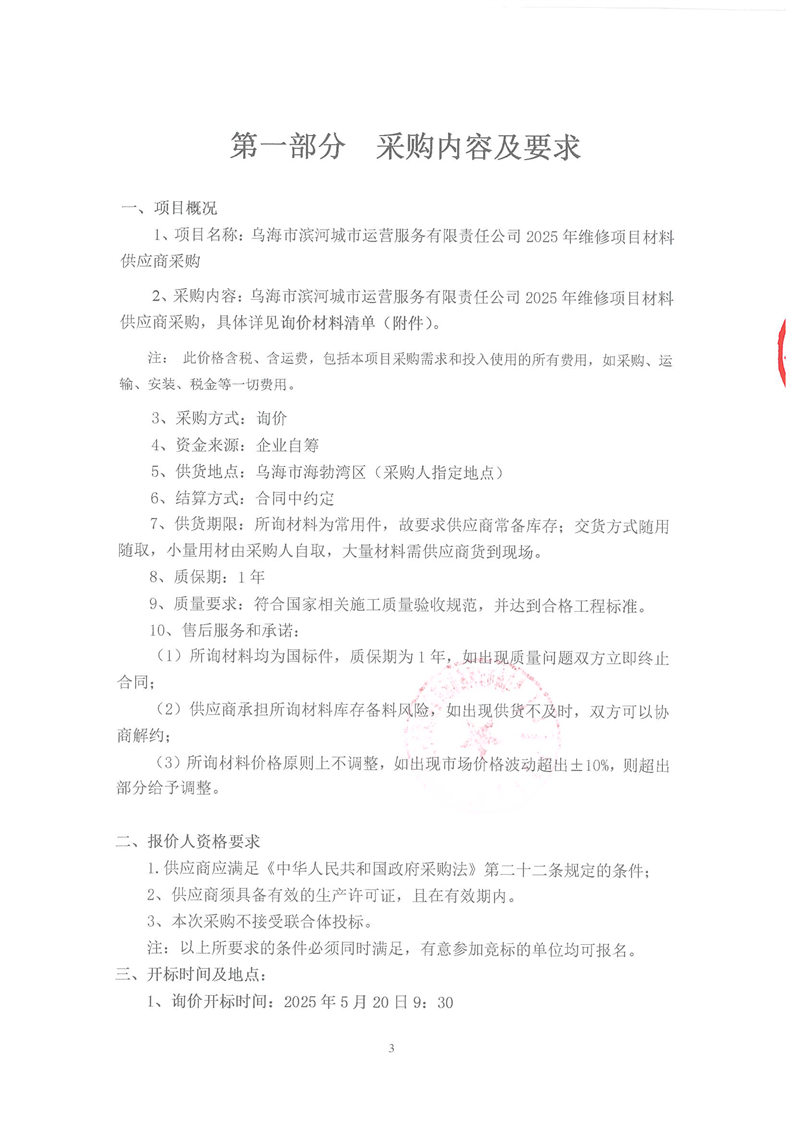 2025年維修項(xiàng)目材料供應(yīng)商采購(gòu)詢價(jià)文件