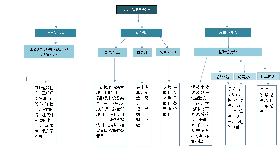 公司現(xiàn)設(shè)5個部門,分別為黨群綜合部、財(cái)務(wù)部、客戶服務(wù)部、基礎(chǔ)檢測部、工程現(xiàn)場及環(huán)境節(jié)能檢測部。公司現(xiàn)有員工38人,其中本科學(xué)歷31人、大專學(xué)歷2人、大專以下5人;二級注冊結(jié)構(gòu)工程師1名,高級職稱7名,中級職稱10名,初級職稱13名。
