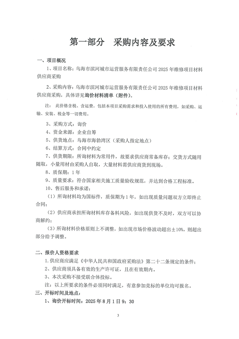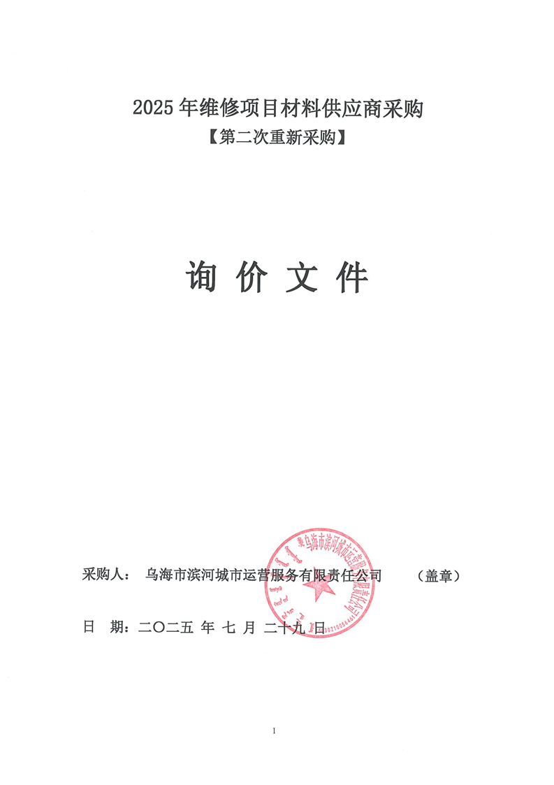 2025年維修項(xiàng)目材料供應(yīng)商采購【第二次重新采購】詢價(jià)文件