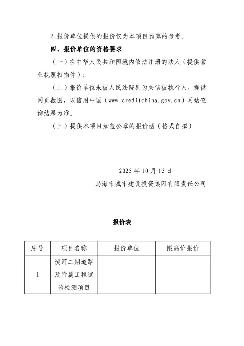 - 2025-12-15“烏海城投集團”微信公眾平臺服務(wù)項詢價公告