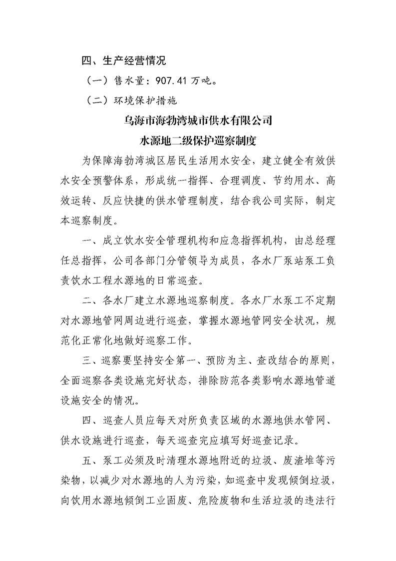 - 2024-07-09烏海市海勃灣城市供水有限公司2024年第二季度信息公開