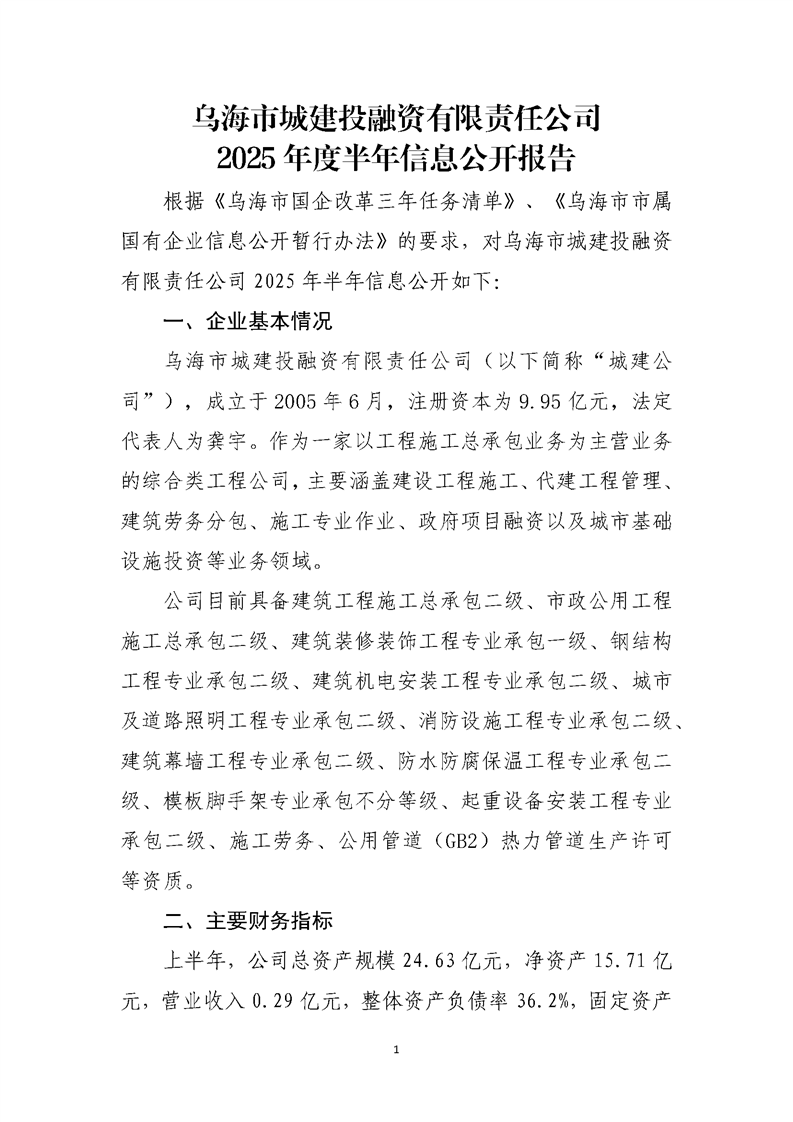 - 2025-10-22烏海市城建投融資有限責(zé)任公司2025年度第三季度信息公開