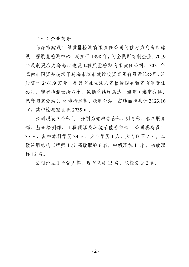 - 2025-03-10烏海市建設工程質量檢測有限責任公司2024年度信息公開報告