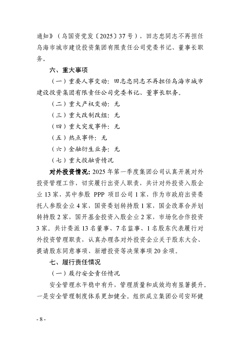 - 2025-07-25烏海市城市建設(shè)投資集團(tuán)有限責(zé)任公司 2025年度第二季度信息公開(kāi)報(bào)告