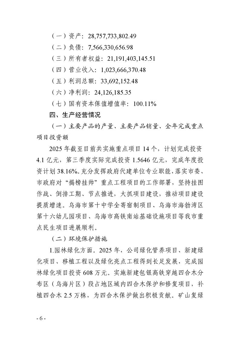 - 2025-07-25烏海市城市建設(shè)投資集團有限責任公司 2025年度第二季度信息公開報告