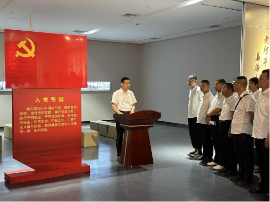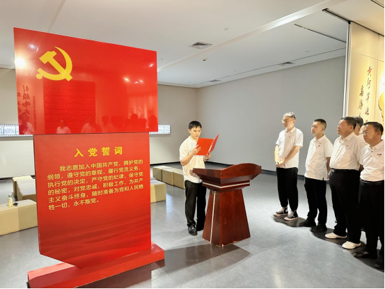 隨后,活動(dòng)進(jìn)入政治生日環(huán)節(jié)。在鮮紅的黨旗前,全體黨員神情肅穆,右手握拳高舉,齊聲重溫入黨誓詞:“我志愿加入中國(guó)共產(chǎn)黨,擁護(hù)黨的綱領(lǐng),遵守黨的章程……”字字千鈞的錚錚誓言在展廳內(nèi)激蕩回響,這不僅是黨員們對(duì)黨的赤誠(chéng)告白,更彰顯著他們?yōu)楣伯a(chǎn)主義事業(yè)奮斗終身的堅(jiān)定信念。新發(fā)展黨員代表走上臺(tái)前,以真摯的話語(yǔ)作出莊嚴(yán)承諾;最后,黨委書記王海軍發(fā)表《做新時(shí)代合格共產(chǎn)黨員》主題寄語(yǔ),激勵(lì)全體黨員在新時(shí)代新征程上勇?lián)姑?、砥礪前行。