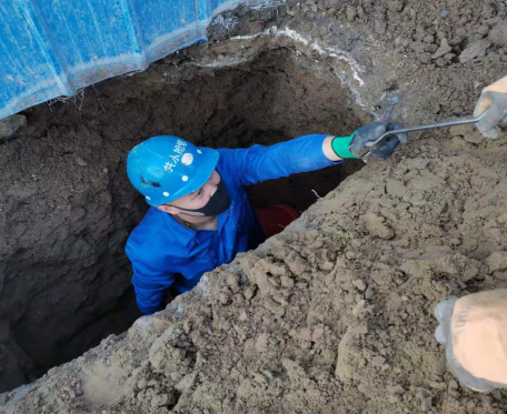 2019年8月26日中午12:10分,管網(wǎng)所維修人員接到調(diào)度中心電話,東環(huán)路跑水。維修人員迅速趕往現(xiàn)場(chǎng)查看原因并關(guān)閉相應(yīng)閘閥,隨后搭設(shè)圍擋及警示標(biāo)志,立即組織車輛及人員進(jìn)行人工開挖,在下午16:50分挖出漏點(diǎn)是ф200水泥管承插口膠圈老化造成跑水,維修人員立即安裝Z200哈夫節(jié)1副,于18:00點(diǎn)搶修完畢,恢復(fù)正常供水。