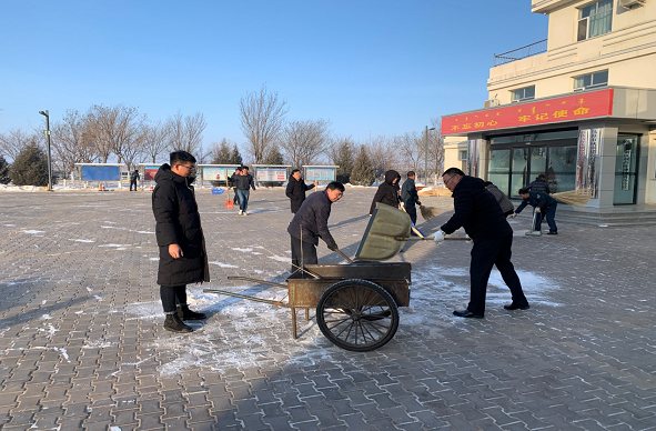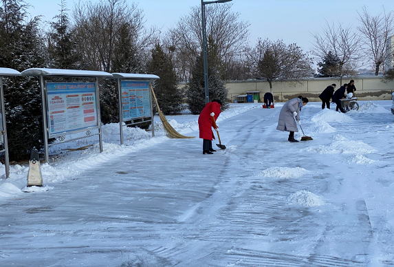 星期一一大早,迎著越過甘德爾山的曙光,市投資集團公司全體干部職工聯(lián)合濱河區(qū)公安分局及物業(yè)公司工作人員一起投入到清掃積雪的行動中。大家分工明確,配合緊密,掃雪、鏟雪、推車,有條不紊。不到一個小時,就將院內(nèi)清掃干凈,恢復(fù)如初。