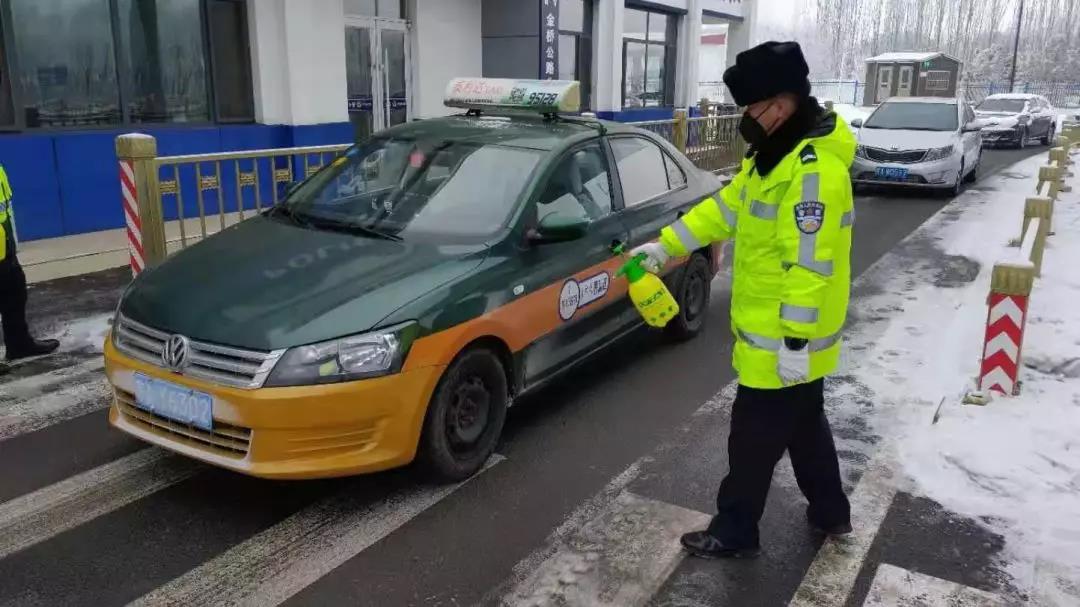 對(duì)車輛消毒。